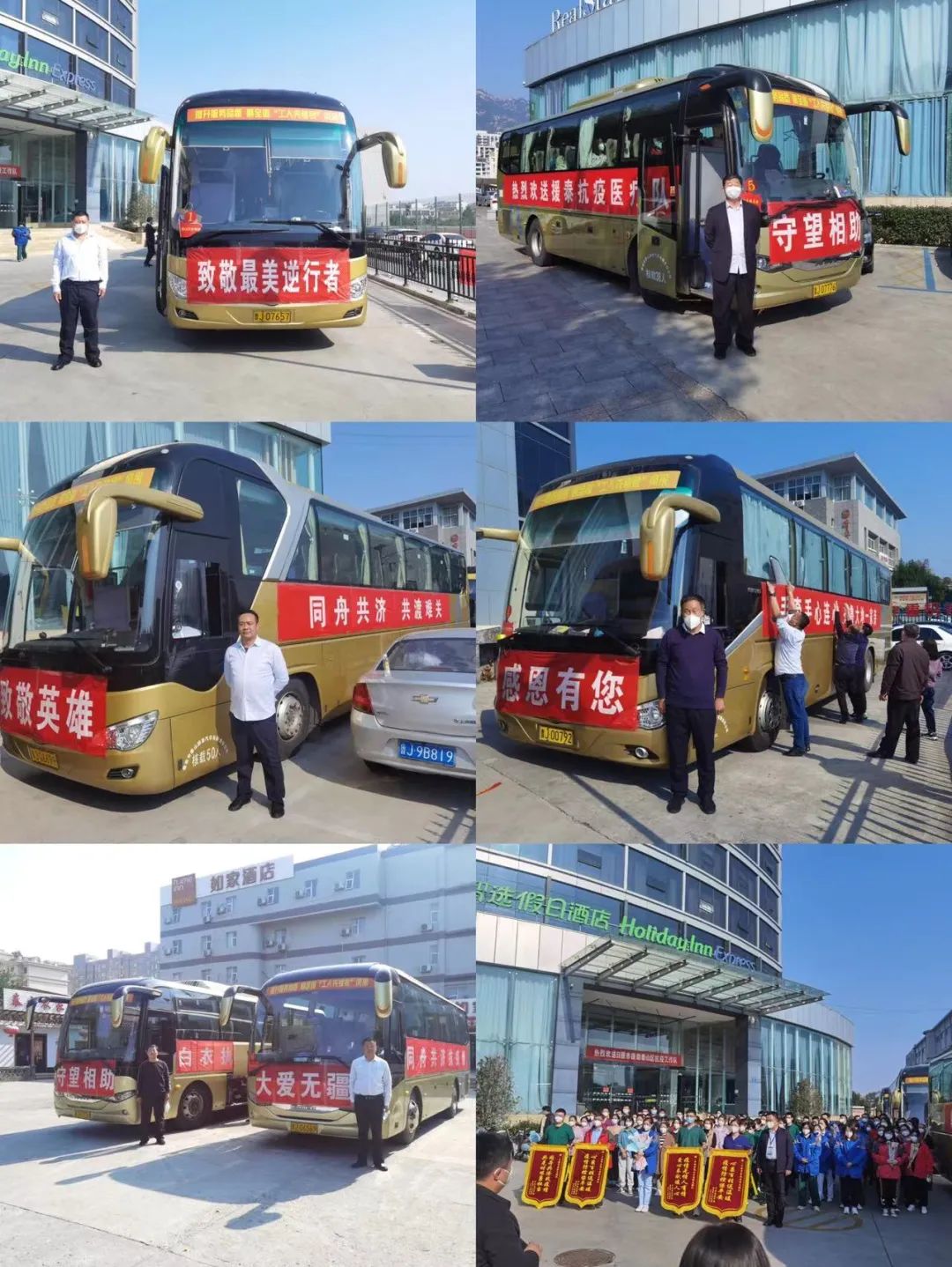 疫情就是命令,防控就是責(zé)任。泰安市泰山文化旅游集團(tuán)有限公司(簡(jiǎn)稱:泰山文旅集團(tuán))全體黨員干部職工牢記全心全意為人民服務(wù)的根本宗旨,在本輪疫情中主動(dòng)亮身份、明責(zé)任,就地轉(zhuǎn)化,沖在一線,以具體行動(dòng)檢驗(yàn)學(xué)習(xí)貫徹黨的二十大精神的實(shí)際成效。戰(zhàn)“疫”進(jìn)入關(guān)鍵時(shí)期,泰安文旅集團(tuán)迅速動(dòng)員,充實(shí)戰(zhàn)“疫”一線力量,各權(quán)屬公司積極響應(yīng),令出如山,有令必行。10月21日,泰安旅汽接到出車任務(wù),護(hù)送日照市醫(yī)療衛(wèi)生人員(150名)返回日照市莒南縣繼續(xù)支援疫情處置工作。聞令而動(dòng),主動(dòng)擔(dān)當(dāng),泰安旅汽派出6部車參加護(hù)送任務(wù)。備勤駕駛員積極響應(yīng),積極報(bào)名參加。運(yùn)行前各駕駛員主動(dòng)檢查好車輛安全、衛(wèi)生,做好車輛防疫消殺,為援泰醫(yī)護(hù)人員提供最安全、優(yōu)質(zhì)、貼心的服務(wù),安全將150名醫(yī)護(hù)人員運(yùn)送至日照莒南縣。返回泰安后繼續(xù)回到公司備勤,隨時(shí)準(zhǔn)備接受新的出車任務(wù)。自泰安市本輪疫情發(fā)生以來公司共出車50余臺(tái)次,疫情運(yùn)轉(zhuǎn)人員近2000人次。