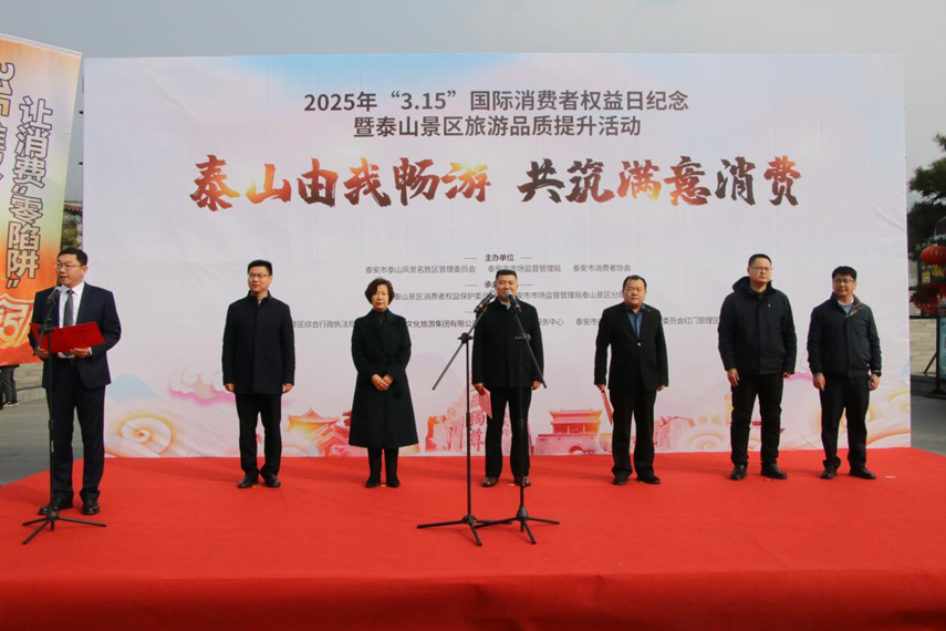 為迎接第43個“3·15”國際消費(fèi)者權(quán)益日,3月11日,泰山景區(qū)“3·15”國際消費(fèi)者權(quán)益日紀(jì)念暨泰山景區(qū)旅游品質(zhì)提升活動在紅門游客中心廣場舉行,此次活動旨在進(jìn)一步營造安全放心、公平誠信的消費(fèi)環(huán)境,助力景區(qū)高質(zhì)量發(fā)展。