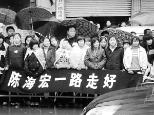 為陳海宏送行的群眾?!。ㄖ性粩?攝)