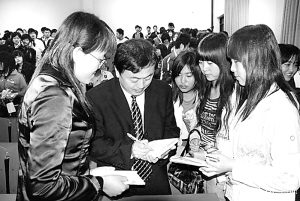 5月14日下午,周口市“青年創(chuàng)業(yè)行動”青年典型事跡巡回報告會在周口某高校舉行。報告會后,青年創(chuàng)業(yè)典型正在為學生簽名。 ?。ū?攝)