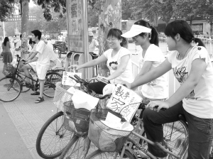 ▲ 一到暑假,就有許多大學生在周口街頭求職,希望找到一份暑期的家教工作?! 。ㄓ浾?孫艷 攝)