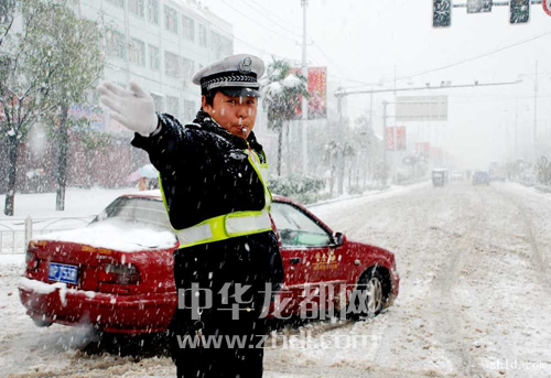 風(fēng)雪中的交通警察。(色影師 攝)