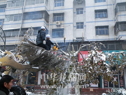 11月13日,周口義工在清理樹(shù)木積雪。(感恩的心 攝)