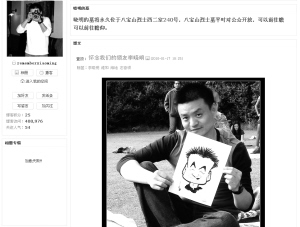 網(wǎng)友開(kāi)博客紀(jì)念李曉明,圖為博客首頁(yè)截圖?!。▽O艷 制作) |