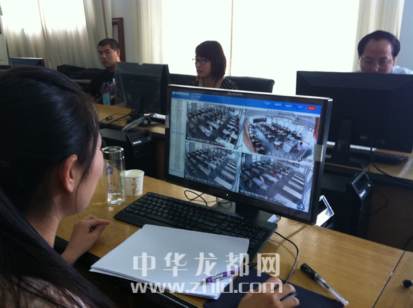 今年高考,我市全部使用視頻標準化考場。在二高視頻監(jiān)考室,9名監(jiān)考員正盯著監(jiān)控屏幕上34個考場的考試情況。記者看到,通過監(jiān)控屏幕,考場內(nèi)考生、監(jiān)考員的一舉一動都能映入眼簾。一名來自西華的監(jiān)考員告訴記者,之前他并不知曉自己會被分配到哪個考場、哪個崗位監(jiān)考,考試當天上午在考點抽簽后,才根據(jù)簽位進入視頻室監(jiān)考。