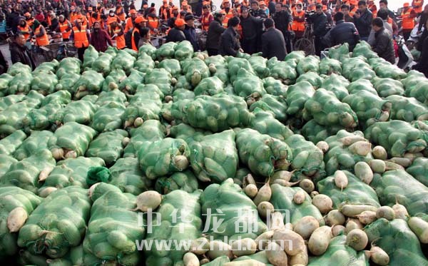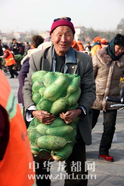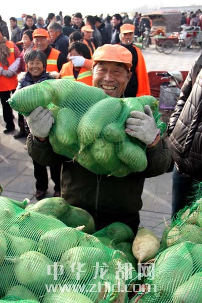 當(dāng)天上午,淮陽(yáng)縣太昊陵廣場(chǎng)人頭攢動(dòng),1000余名貧困家庭代表早早地來到現(xiàn)場(chǎng)等候。9時(shí)許,“愛心蘿卜”開始免費(fèi)發(fā)放。僅一上午時(shí)間,20萬斤蘿卜就被認(rèn)領(lǐng)一空。