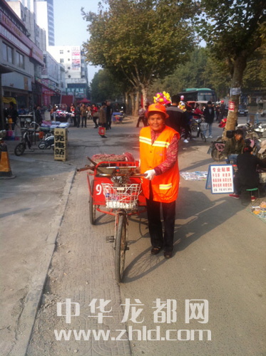 ????由于周口荷花市場北門附近有幾家經(jīng)營服飾的大型賣場和許多經(jīng)營各色小吃的店鋪,因而這里極具人氣。據(jù)說,每天從此北門經(jīng)過的市民超過10萬人。人一多,地面的衛(wèi)生狀況自然不容樂觀?!捌綍r,我們是‘一班一人’清掃,但是到了節(jié)假日,人流量往往是平時的幾倍,垃圾量自然增多,我會和另外一位同事分頭打掃。”王霞軒說。