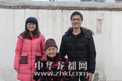 ????昨天上午,在上海相識(shí)、相知、相愛的沈丘人郭鑫和蘇州吳江人迮娟芬,婚后首次回到沈丘老家,拜會(huì)親友。圖為小兩口與87歲的奶奶合影。
