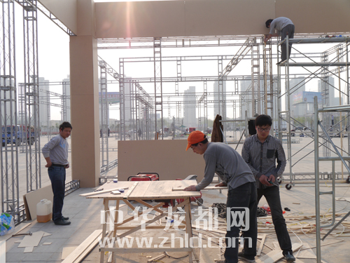 ????明日上午,由周口報業(yè)傳媒集團主辦的第13屆房車聯(lián)展將在市體育中心隆重開幕。為給前來觀展的市民提供優(yōu)質(zhì)的服務(wù)體驗及華麗的視覺享受,4月8日起,參展商家就已著手搭建展臺(如圖)。晚報記者 宋風(fēng) 攝