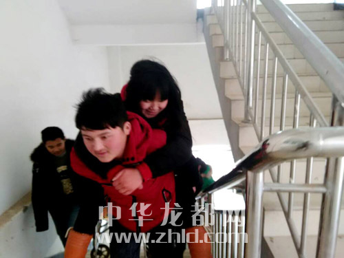 ????男同學每天背她上下樓