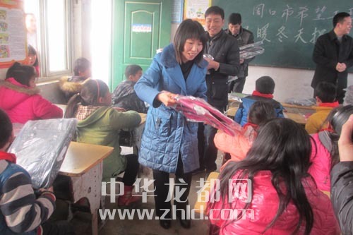 ???????2月3日,共青團(tuán)項(xiàng)城市委在該市開(kāi)展了“關(guān)愛(ài)留守兒童”溫暖冬日活動(dòng),志愿者把圍巾、帽子、書(shū)包等愛(ài)心物品送給蓮花辦事處徐樓行政村的留守兒童,為他們送去溫暖和關(guān)愛(ài)?! ⊥韴?bào)記者 金月全 攝 線索提供 張紀(jì)友