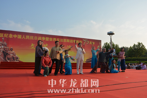 ????龍都網(wǎng)訊(記者 孫艷? 通訊員 理效明 崔海燕) 9月1日,行政新區(qū)廣場(chǎng)上人頭攢動(dòng),熱鬧非凡。由川匯區(qū)委宣傳部主辦、區(qū)文化局承辦的慶??箲?zhàn)勝利暨世界反法西斯戰(zhàn)爭(zhēng)勝利70周年文藝匯演在這里舉行。市委宣傳部常務(wù)副部長(zhǎng)陶韜及區(qū)領(lǐng)導(dǎo)郭志剛、陳朝棟、葉長(zhǎng)麗、張劍鋒、梁顯學(xué)、王琳、許四軍、李揚(yáng)、王崇山,區(qū)人武部部長(zhǎng)蘇運(yùn)才等與現(xiàn)場(chǎng)上千名群眾一起觀看了演出,共同追思中華民族抗戰(zhàn)時(shí)期那段血與火的歷史,紀(jì)念中國(guó)人民抗日戰(zhàn)爭(zhēng)和世界反法西斯戰(zhàn)爭(zhēng)勝利70周年。