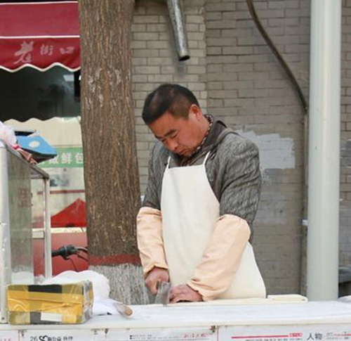 ????郭良山在銀川街頭做愛心面條