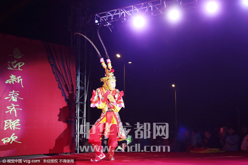 ????還記得小時(shí)候我們搬著小板凳到村頭看電影或聽?wèi)騿??如今啊,農(nóng)民不再看電影聽?wèi)蛄耍情_始在村頭辦“村晚”啦。2月2日晚上,太康縣老冢鎮(zhèn)孟莊行政村舉辦了一臺(tái)猴年“村晚”。演出現(xiàn)場(chǎng)震天的鼓點(diǎn)和著嗩吶的節(jié)拍,熱鬧非凡。英俊的公子、羞怯的大家閨秀,神采奕奕的大爺大媽,一個(gè)個(gè)生動(dòng)的角色,一段段幽默詼諧的節(jié)目,吸引著附近數(shù)十個(gè)村的兩萬(wàn)余名村民在此觀看。