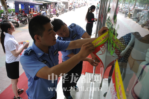 城管隊(duì)員清理小廣告