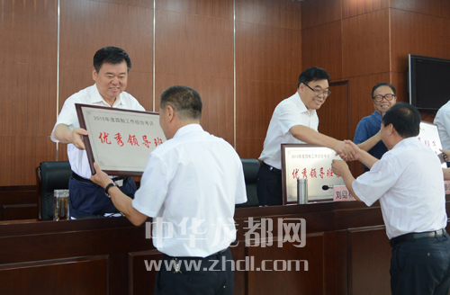 徐光、劉繼標(biāo)等市領(lǐng)導(dǎo)為受表彰的先進單位頒獎。記者 王映 攝