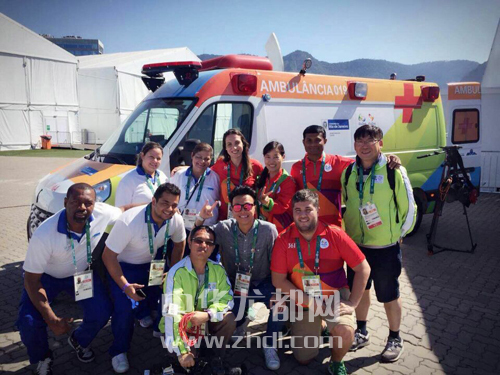 ????在里約奧運村運動員訓練區(qū),陳滕與同伴負責6個場館30個大小項目的醫(yī)療急救護理轉(zhuǎn)運、醫(yī)療站外語交流、協(xié)助搬運患者、協(xié)助錄入場館內(nèi)所有醫(yī)療服務信息等工作。