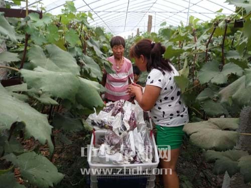 ????在農(nóng)場的葡萄大棚里,一串串葡萄被套上了塑料袋,形成了五顏六色的奇特景觀,社員正忙著采摘裝箱(如圖)。農(nóng)場技術人員介紹:“給葡萄套袋,可以明顯改善果實品質(zhì),保護果實不受病蟲害侵襲,減少農(nóng)藥殘留,防鳥啄食,改善果實外觀,提高果品檔次,是當前生產(chǎn)高品質(zhì)、無公害葡萄的有效措施?!?/p>