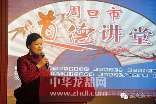 ????本報訊 11月4日上午,受市委宣傳部、市文明辦、市質(zhì)量技術(shù)監(jiān)督局邀請,《中國道學(xué)論壇》總編董延喜在周口市道德講堂(市群藝館小劇場)(圖三)以《用道德支撐人格,用文化點亮生命》為題,作了一場別開生面的老子文化講座(圖一),180多人聆聽了講座(圖二)。