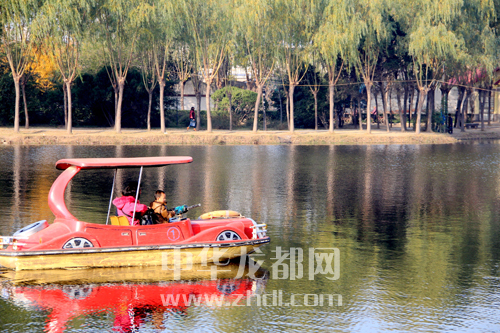 ????時值初冬,周口人民公園內爛漫秋色還未褪去,紅楓、銀杏等樹葉,紅似火、黃如金,色彩斑斕,組成了如詩如畫的美景。人們置身其中,其樂融融。葛英 攝