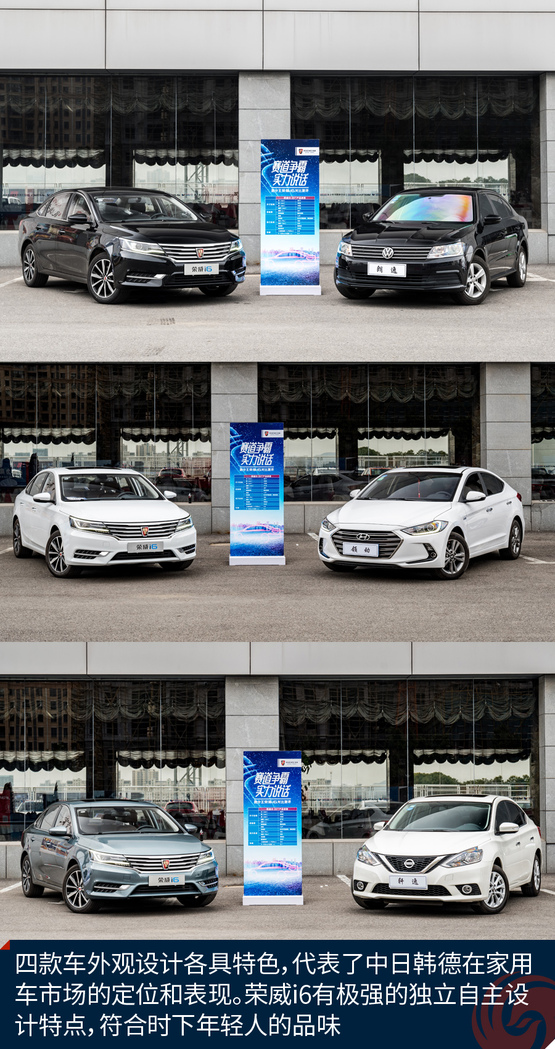 鳳凰汽車·搶先試駕?榮威i6可以說打響了互聯(lián)網家轎的第一槍,它是繼RX5之后,榮威旗下的第二款重量級產品,延續(xù)了榮威RX5家族律動美學的優(yōu)良基因。上市十天訂單便突破萬輛大關,是一款非常有潛力挑戰(zhàn)合資競品的車型。但是光說不練,假把勢。今天我們就在江蘇萬馳的賽道場地內,特意選取了同級合資老炮軒逸16款1.6LXV CVT智享版、朗逸17款1.6L自動舒適版、領動?16款 1.4T 雙離合炫動?精英型,和榮威i6 20T互聯(lián)網智尊版做個對比,看看這些銷量過萬的合資家轎與新晉的小鮮肉榮威i6到底誰更勝一籌?