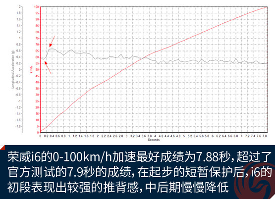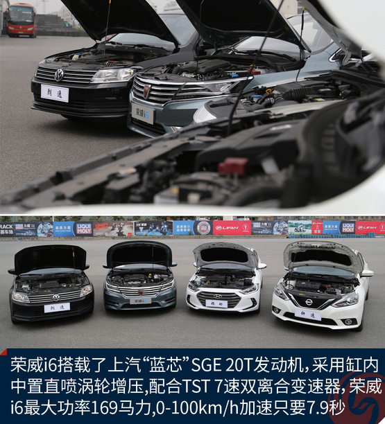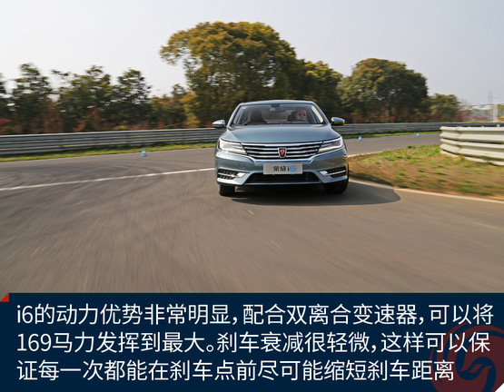 在動力方面,榮威i6搭載了上汽“藍芯”SGE 20T發(fā)動機,采用缸內中置直噴渦輪增壓、高效氣門配氣機構等國際領先技術,配合TST 7速雙離合變速器,榮威i6最大功率169馬力,比朗逸、軒逸和領動分別高出了59馬力、43馬力、39馬力。而實際測試中也證實了這一點,榮威i6在加速和剎車方面確實領先于競品車型。7.88秒的0-100km/h的加速成績確實讓人大吃一驚,榮威i6表現(xiàn)出了極高的運動化調教。剎車方面,榮威i6也表現(xiàn)相當出色,36.59米的剎車距離,可以跟一些性能車相提并論。300mm的通風剎車片功不可沒,整個制動過程有力平穩(wěn),車身懸掛對于點頭的抑制也很到位。