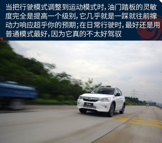 ????????在混合動力模式下,將駕駛模式調(diào)整為SPORT模式,由于起步階段是電機發(fā)力,因此并不像汽油車那樣靠吊轉(zhuǎn)速來獲得最大的扭矩。此時,你只需將油門踩到底,任由宋DM的電機和發(fā)動機發(fā)力就行,而大扭矩帶來的直接體驗就是,身體像是被摁壓在座椅上,任由車輛來讓我體驗G值給身體所帶來的快感,而這種“變態(tài)”的加速感體驗確實是非常的過癮;可當(dāng)你還在意猶未盡地回味這速度高潮的時候,不知不覺就到了該踩剎車的節(jié)點。