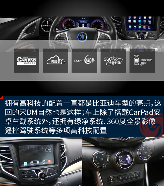 ????????內(nèi)飾方面,宋DM保持了家族式設(shè)計,具有較強立體感,并采用了大量的軟性材料包裹。配置方面,新車將配備有全景天窗、360度全景影像、遙控駕駛、三輻式多功能平底方向盤以及電子手剎等配置。宋DM除了配備ESP車身電子穩(wěn)定系統(tǒng),TCS牽引力控制系統(tǒng)、胎壓監(jiān)測等電子科技配置,還搭載CarPad多媒體系統(tǒng)、PM2.5綠凈系統(tǒng)等豪華配置。