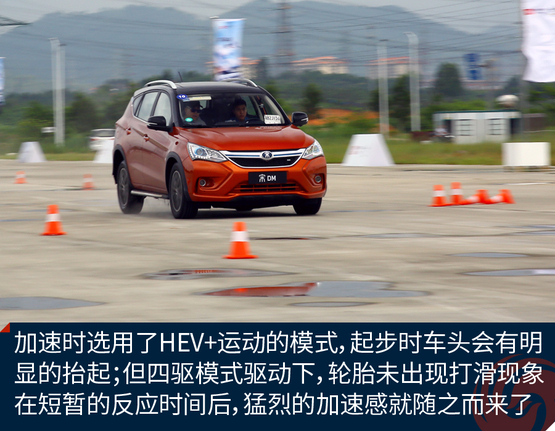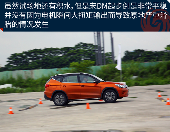 ????????為了充分體驗宋DM的加速能力,我們在試駕場地對其進行了試駕體驗。雖然試駕前一天下過雨,場地還有積水,但是宋DM起步倒是非常平穩(wěn)。并沒有因為電機瞬間大扭矩輸出而導(dǎo)致原地嚴(yán)重滑胎的情況發(fā)生。經(jīng)過分析,出現(xiàn)這種情況的原因可能是宋DM全系標(biāo)配了ESP車輛穩(wěn)態(tài)控制系統(tǒng),因此在起步時或者濕滑路面上行駛也能保證平穩(wěn);另一個原因是宋DM搭配了全時電四驅(qū),車輛前后軸上各搭載有電機,四輪驅(qū)動讓車輛的動力輸出更順暢和均衡。