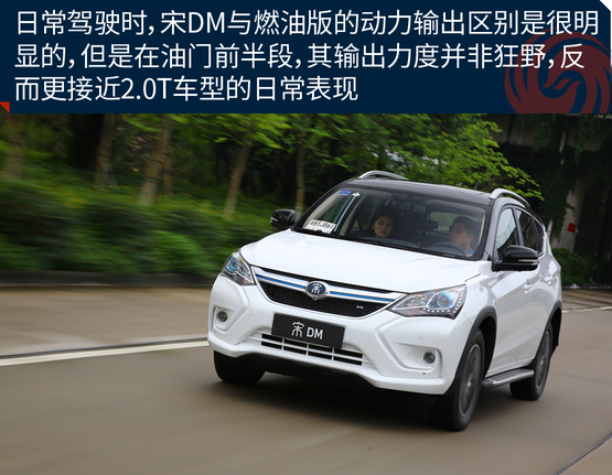 ????????當(dāng)我前段時間試駕唐100時,就深深的感覺比亞迪真是“國產(chǎn)黑科技”的代表,光就它那4.9秒的加速和100公里的純電續(xù)航里程,就已經(jīng)讓我很欽佩!但遺憾的是,那次試駕主要只進行了純電模式的里程測試,它那“名聲在外”的優(yōu)異性能還沒去詳細(xì)的體驗,這讓我感到有些不過癮,總覺得錯過了些什么,心中有些小小的遺憾!好在“老天爺餓不死瞎家雀”,沒過多久,當(dāng)我敬愛的領(lǐng)導(dǎo)就把比亞迪的另外一款插電混合動力SUV-宋DM的試駕分給我后,心中的喜悅溢于言表;當(dāng)?shù)弥@次試駕的主要就是體驗新車的動力性能后,那真是太期待了。宋DM相比唐100來說,它們之間除了級別的不同外,汽油發(fā)動機也從2.0T變?yōu)榱?.5T,純電續(xù)航里程也從100公里變?yōu)榱?0公里;但是宋DM的百公里加速依舊為4.9秒,百公里油耗也僅有1.4升/公里;而我對新車也總結(jié)了5個問題,帶到此次試駕,來尋找答案!