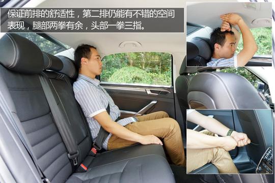 ????????全新帕薩特的內(nèi)部乘坐空間還是挺大的,美中不足的是后排地板的凸起比較高,好在后排中間座位配有頭枕,而且座椅整體設(shè)計的比較寬大,乘坐舒適性還是有保證的。