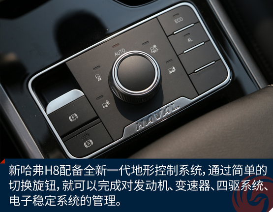 ????????四驅(qū)系統(tǒng)也是新哈弗H8的亮點(diǎn),搭載全新一代全地形控制系統(tǒng),可使駕駛者簡單的旋轉(zhuǎn)旋鈕,切換駕駛模式,這套系統(tǒng)集成了7大不同的駕駛模式。讓駕駛者可以輕松面對(duì)各種復(fù)雜的路況,這套系統(tǒng)的目的就是把復(fù)雜的操作簡單化。