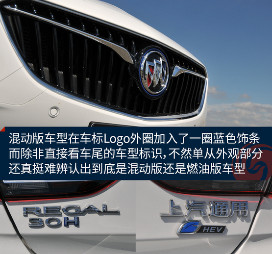 ????????仔細(xì)對(duì)比才會(huì)發(fā)現(xiàn),混動(dòng)版車型在車標(biāo)Logo外圈加入了一圈藍(lán)色飾條,而除非直接看車尾的車型標(biāo)識(shí),不然單從外觀部分還真挺難辨認(rèn)出到底是混動(dòng)版還是燃油版車型。