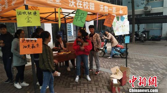 ????這個(gè)快遞盒回收公益活動(dòng)由該校商學(xué)院物流專業(yè)學(xué)生發(fā)起,35名學(xué)生分別到該校宿舍七號(hào)樓、二號(hào)樓、四號(hào)樓三個(gè)固定站點(diǎn)進(jìn)行盒子回收。此外,每天利用中午、晚上休息的時(shí)間去寢室上門回收。