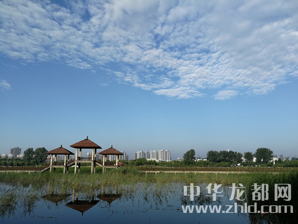 12月17日,天氣晴好,周口公園在藍天白云的映襯下顯得分外美麗。