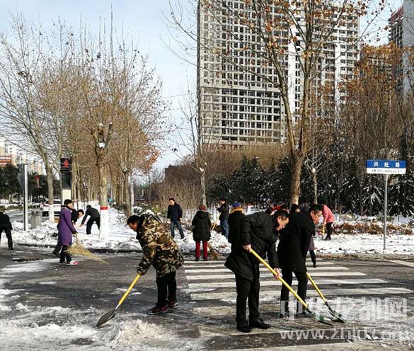 中華龍都網(wǎng)訊(周口報(bào)業(yè)全媒體記者 張海華)1月8日,為防止路面冰凍造成交通安全隱患,周口報(bào)業(yè)傳媒集團(tuán)組織員工來到劃分路段義務(wù)清理積雪,員工們拿著鐵锨、鏟子,積極清掃道路上的積雪,經(jīng)過大家的辛苦勞動(dòng),確保了道路暢通以及職工群眾的正常出行。