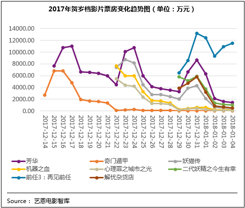 于12月29日上映的國產喜劇IP“前任系列”的第三部作品《前任3:再見前任》整體表現也較優(yōu)異,影片用接地氣的風格闡釋愛情與成長的主題,讓人捧腹又直戳人心,滿意度80.7分居檔期第二位;在良好口碑支撐下,影片票房也表現出了逆市上揚的巨大潛力。