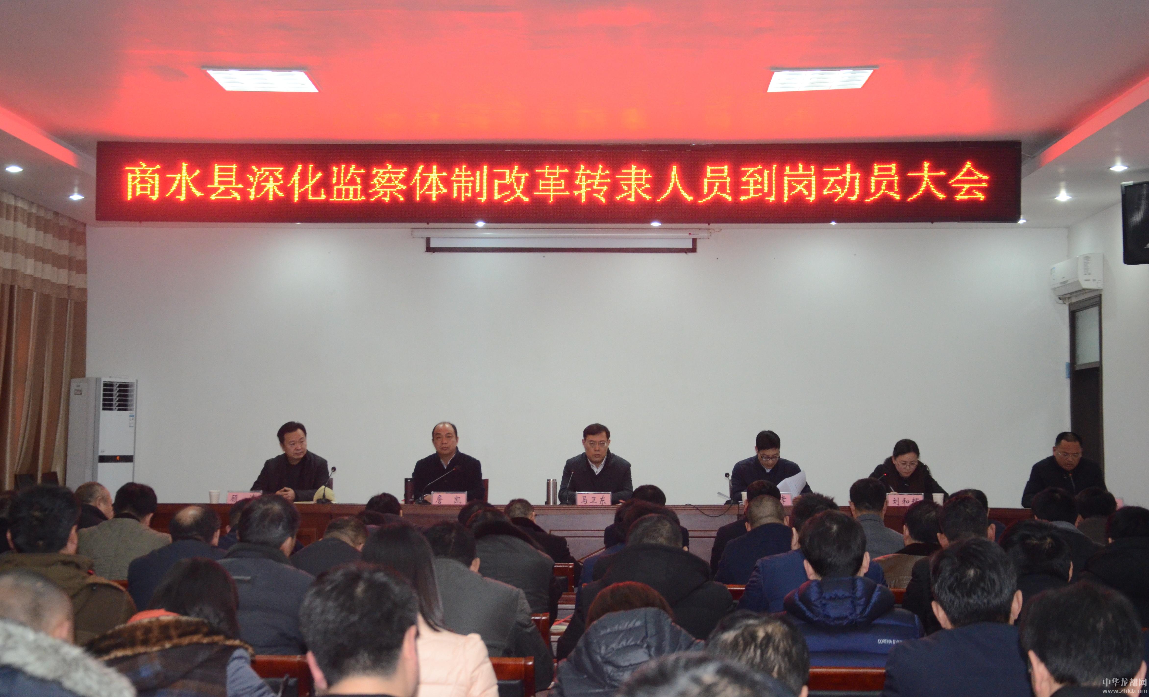 中華龍都訊 (周口報業(yè)全媒體記者 付永奇 通訊員 李前進)1月17日下午,商水縣深化監(jiān)察體制改革轉隸人員到崗動員大會在縣委五樓會議室召開。市紀委常委、市監(jiān)委委員朱良孝,縣委書記馬衛(wèi)東,縣委常委、紀委書記詹凱,縣委常委、組織部長劉和輝,縣檢察院檢察長顧濤;縣紀委監(jiān)察局機關、縣委巡察機構全體人員以及縣檢察院全體轉隸人員參加了會議。