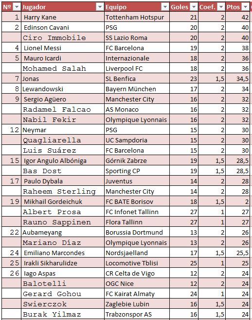 目前為止,凱恩已經(jīng)打進(jìn)21粒聯(lián)賽進(jìn)球,超過卡瓦尼、因莫比萊,高居歐洲金靴獎(jiǎng)的第一名。梅西以19粒進(jìn)球位居第4。蘇亞雷斯近期狀態(tài)回暖,連續(xù)取得進(jìn)球,目前也收獲了15粒進(jìn)球,并列內(nèi)馬爾,位居第12名。