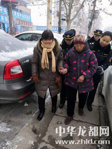 當(dāng)日早上8點(diǎn)15分許,正在西華縣明德小學(xué)附近執(zhí)勤的縣城管局女子中隊(duì)的一名隊(duì)員突然發(fā)現(xiàn)一位老婆婆時(shí)而左右張望,時(shí)而喃喃自語(yǔ)。這名隊(duì)員立即上前詢問(wèn)該名老人是否遇到困難時(shí),還未等隊(duì)員說(shuō)話,老人就張口說(shuō):“閨女,我不知道回家的路了?!苯?jīng)過(guò)耐心溝通得知,老人當(dāng)日從老家來(lái)縣城找閨女,但是忘了閨女家怎么走。老人只記得兒子的名字,其它一無(wú)所知。女子中隊(duì)的隊(duì)員們一邊安撫老人的情緒,一邊把老人的情況、照片與其兒子的姓名等信息發(fā)到西華縣城市管理工作群,并用對(duì)講機(jī)通知讓大家共同關(guān)注幫忙尋求線索。城市管理工作群的群?jiǎn)T們及時(shí)把信息轉(zhuǎn)發(fā)到朋友圈,很快工作群里有了回復(fù)信息,有人認(rèn)識(shí)老人的兒子,并提供了聯(lián)絡(luò)方式等信息。通過(guò)電話溝通,證實(shí)了高某正是老人的兒子。因?yàn)樘鞖夂洌胫先诵袆?dòng)不便而且容易著涼,為盡快把老人送到家人身邊,女子中隊(duì)的隊(duì)員們隨即把老人扶上車送其回家。