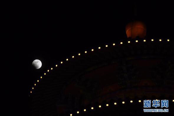 這是1月31日在北京宣武門地區(qū)拍攝的月亮升起時的場景。當(dāng)日是丁酉雞年最后一個滿月夜,天空中上演月全食大戲。我國大部分地區(qū)都能欣賞到一輪“紅月亮”高懸夜空的迷人景象。新華社記者 邢廣利 攝