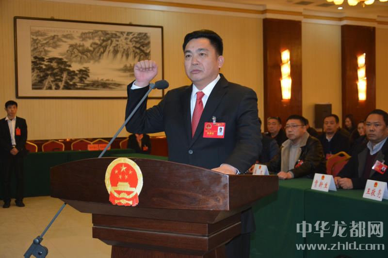 新當選的太康縣監(jiān)察委員會主任何明照在大會現(xiàn)場進行憲法宣誓