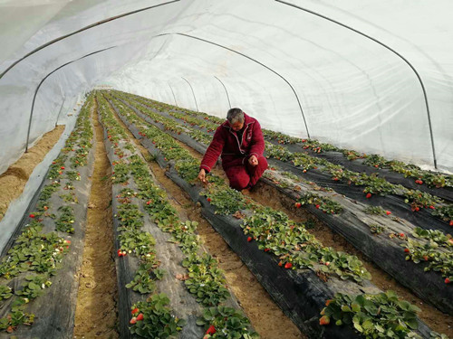 2016年,在周口職業(yè)技術(shù)學(xué)院的資助和專業(yè)老師的指導(dǎo)下,賈留功在自家的責(zé)任田里建起了草莓大棚。他用學(xué)到的草莓栽培技術(shù)精心管理,草莓長勢很好,當(dāng)年就獲得了不菲的收入,成為全村第一個(gè)靠技朮幫扶淘到第一桶金的貧困戶。