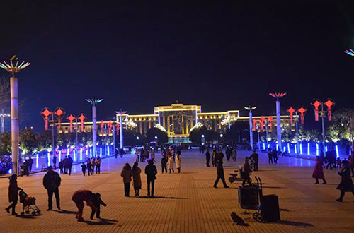 亮起來的不僅是老城區(qū),建設(shè)一新的新城區(qū)各單位樓體,小區(qū)樓體也都亮了起來,各種燈飾隨著樓體造型蜿蜒曲折,熠熠生輝。新華路路旁邊的行道樹都換上了“新衣”,樹冠自上而下披掛著五顏六色的流星燈飾,夢幻迷離,走在其中,仿佛進入了一個童話般的世界。