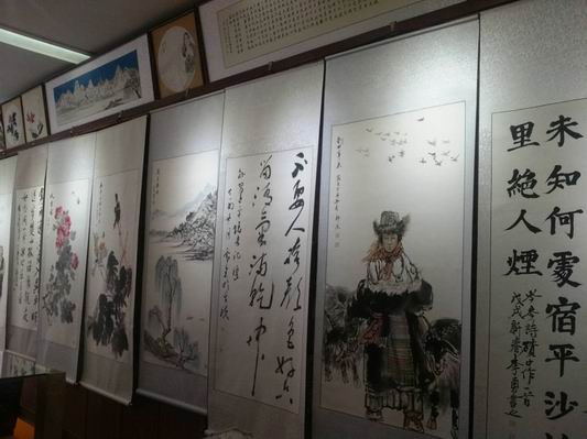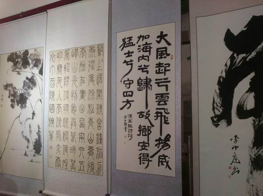 本次書畫展由中共沈丘縣委宣傳部、縣文聯(lián)主辦,縣書協(xié)、縣美協(xié)承辦,展出我縣書畫家創(chuàng)作的書畫精品一百多幅。書法作品五體俱全,其中范曉公、高望、李少華等人的行草書;陳國(guó)旗的小篆;李中魁、劉景的隸書;趙東明、李勇的楷書各具風(fēng)采,引人注目。國(guó)畫作品花鳥(niǎo)、人物、山水皆有,青年畫家吳帆的《鐘馗圖》孔武有力、王志全的《翠竹》》筆墨精到、女畫家海納的《山水》氣勢(shì)磅礴,老畫家王蒞泉的《貓蝶嬉戲》功力深厚。