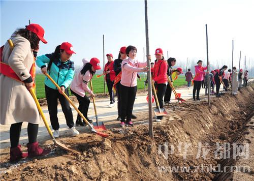 中華龍都網(wǎng)訊(周口報(bào)業(yè)全媒體記者李瑞才 通訊員胡洪濤文/圖)3月12日,是國家第40個(gè)植樹節(jié),鹿邑縣婦聯(lián)組織60名巾幗志愿者前往賈灘鎮(zhèn)李老村,參加“巾幗志愿者攜手綠化鹿邑”義務(wù)植樹活動(dòng)。