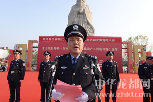 中華龍都網(wǎng)訊(周口報業(yè)全媒體記者 李瑞才 通訊員 石中華 文/圖)為扎實做好2018年老子廟會系列活動安全保衛(wèi)工作,進一步鼓舞士氣、激勵斗志,誓奪系列活動安保工作決戰(zhàn)全勝。2018年3月30日下午,鹿邑縣公安局在太清宮老子文化廣場隆重舉行2018年老子廟會系列活動安全保衛(wèi)誓師大會,周口市公安局黨委委員、鹿邑縣副縣長、公安局長何新敏出席大會并作動員講話。局黨委全體班子成員和參加安保執(zhí)勤的全體民警、輔警、武警官兵、消防隊員共計1200余人參加了誓師大會。誓師大會由政委任金瑞主持。