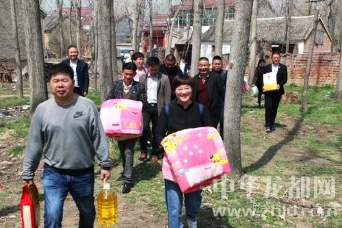 上午11點,在志愿者王剛的組織下,趙亮、程桂菊、宋東風(fēng)等志愿者、愛心人士驅(qū)車來到太康縣遜母口鎮(zhèn)劉橋行政村邵莊,給重病患者張肖送“愛心款”。