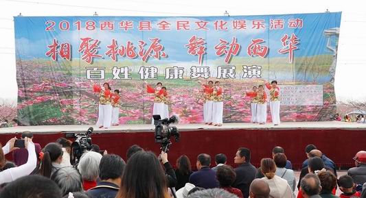 中華龍都網(wǎng)訊(周口報(bào)業(yè)全媒體記者 張猛)在西華縣第十四屆桃花節(jié)期間,由縣委宣傳部、縣文廣新局主辦的“相聚桃源 舞動(dòng)西華”百姓健康舞展演活動(dòng),在黃橋鄉(xiāng)萬畝桃園舉行,來自全縣的10 余支舞蹈隊(duì)參加展演?;顒?dòng)吸引眾多市民、游客前來觀看。