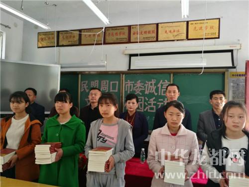 活動(dòng)當(dāng)日,民盟周口市委一行數(shù)人分別到商水縣新城小學(xué)和張莊一中等學(xué)校舉辦誠(chéng)信講座,并捐贈(zèng)數(shù)百本盟員戚富崗編著的誠(chéng)信圖書。在每一所學(xué)校,民盟市委都為同學(xué)們送上一場(chǎng)精彩的講座。他們用鮮明的事例讓同學(xué)們深刻體會(huì)到只有內(nèi)心裝滿誠(chéng)信,品格才會(huì)高尚、筆下的文字才會(huì)打動(dòng)人、才會(huì)實(shí)現(xiàn)理想抱負(fù)有所作為!